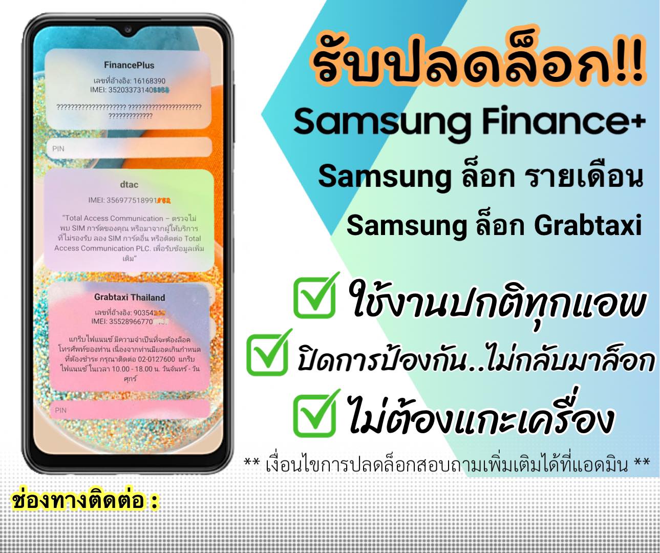รับปลดล็อคเครื่องติดรายเดือนรุ่นที่รองรับ (Update 13/7/66)